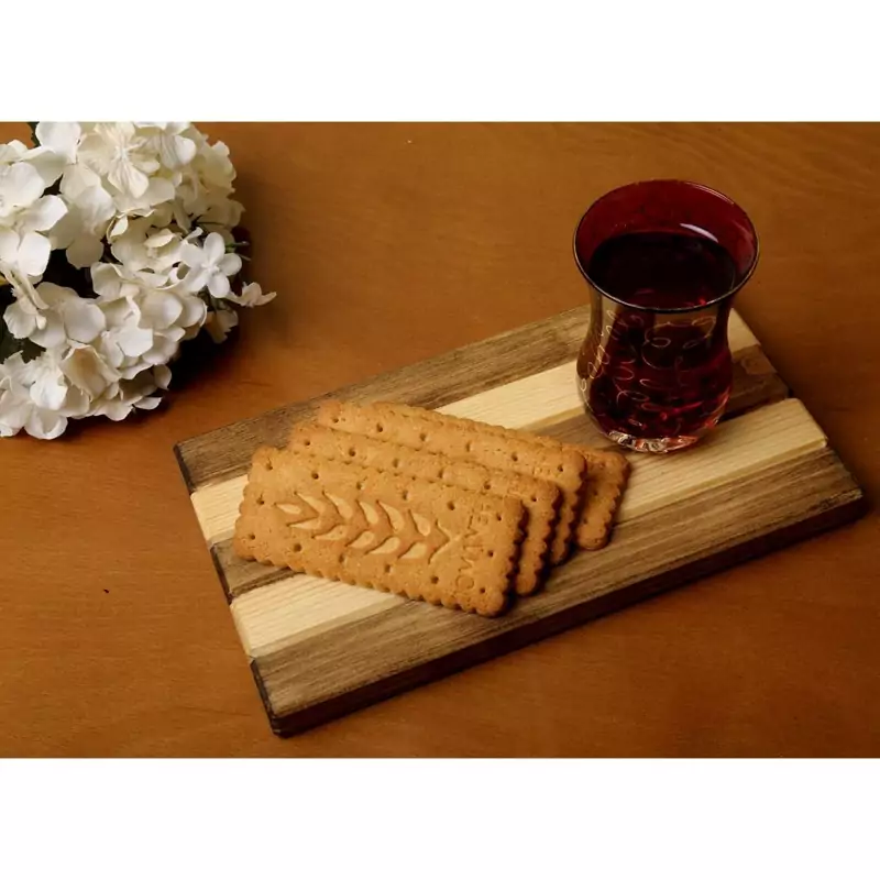 تخته سرو پذیرایی روسا از بهترین چوبهای روس تهیه شده و با دقت بسیار زیادی مونتاژ شده است. از مقطع چوب ها پیداست که از ام دی اف یا پلای ووود یا هیچ نوع چوب دیگری که با مواد شیمیایی آماده و فرآوری شده استفاده نکرده ایم و تختهها قاب شت و شو هستند. این تختهها مناسب پذیرایی با تنقلات و میوهها و همچنین مناسب زیر لیوانی و سرو چاشت عصرانه هستند. زیرا به راحتی یک لیوان چایی و چند کوکی یا شکلات در آن جای خواهد گرفت. همچنین شما می توانید برای سرو یک نفره میوه از این محصول استفاده نمایید. با کمی خلاقیت این تخته سرو می تواند انتخاب مناسبی برای اکسسوری های لازم در عکاسی لوازم کوچک باشد. هدف ما از توجه به جزییات بسیار زیبا در این محصول این است، که شما علاوه بر استفاده از یک محصول کاملاً کاربردی در حین پذیرایی علاوه بر لذت معاشرت از دیدن جزییات کوچک اما دقیق تخته سرو نیز لذت ببرید.