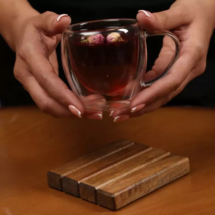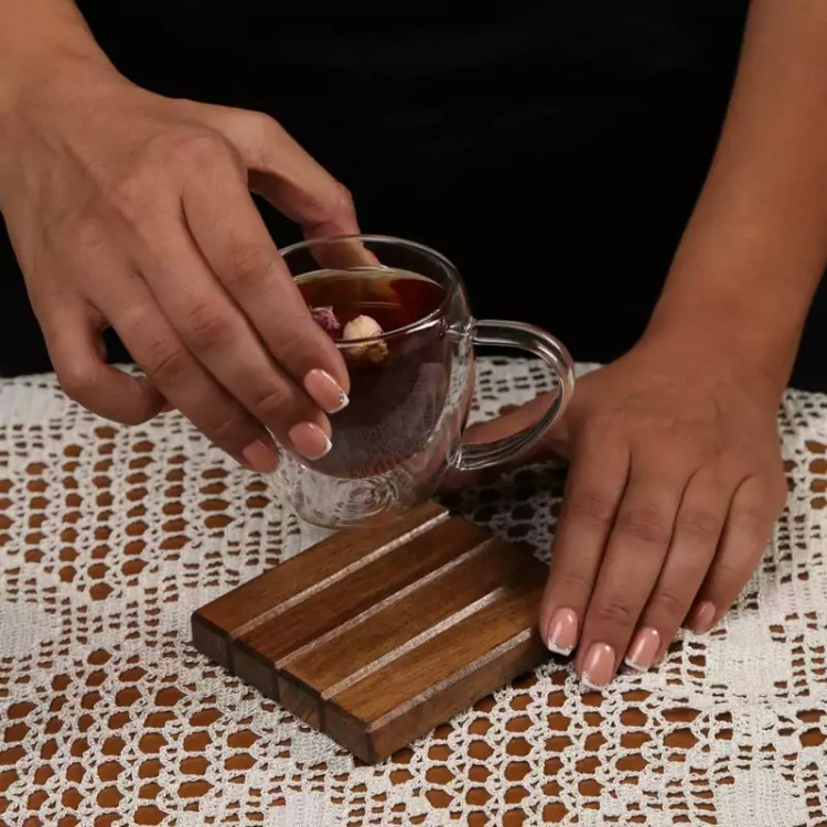 زیر لیوانی چوبی راش، مدل روشا رنگ گردویی