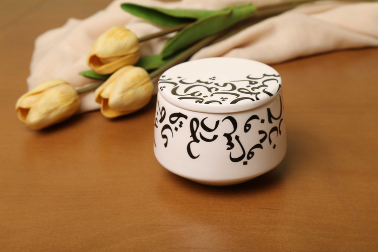 قندان طرح حروف، ساخته شده در کارگاه وِستا سرامیک به صورت کاملاً دستساز قابلیت شست و شو در ماشین ظرفشویی در ساخت این ظرف از بهترین مواد موجود در بازار استفاده شده و می تواند گزینه ی بسیار مناسبی برای هدیه دادن و یا جشن الفبای کلاس اولی ها باشد.